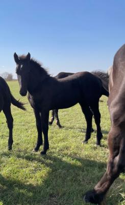 This flashy black stud colt should finish between 18.1 and 19hh. Friendly and sweet. Modern type. Other foals also available - please visit our website. | ||||||||||||||||||