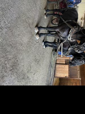 If you are needing a solid well broke gelding to do fall or winter Hay rides or weddings here he is. Kade has been shown single, team and in multiples. Would be easy to break to ride. He has been shown open, amateur and youth. Easy to shoe without stocks. Easy to harness and hook. Would sell single or with Goshen Trail Sparky. | ||||||||||||||||||
