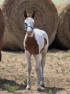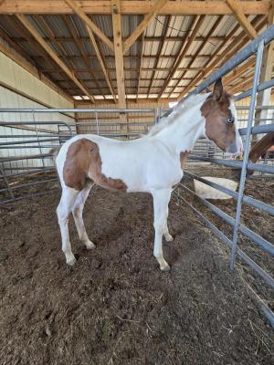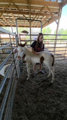 Mariposa is a gorgeous bay tovero filly out of a grade Arabian mare and our buckskin spotted draft stallion, Ajax. Mariposa has been handled since birth and will have all her baby basics before going to new home. She should mature somewhere around 15H. Prior sibling is a child’s horse. So these babies are easy going and very laid back! Email for more information or check us out on FB. We are Ghost Creek Farms | ||||||||||||||||||