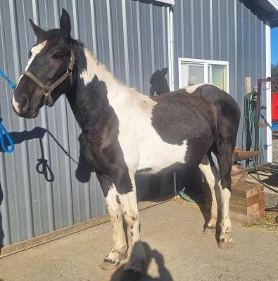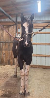 Victoria is a very sweet yearling filly with a great disposition and very easy to handle. Good for the farrier, loads and hauls, stands tied with no issues. Dam is a registered North American Spotted Draft with good foot, very correct and great conformation. Sire is a Canadian bred Percheron (Johnny B Good) that stands approx. 18 hands and very modern with great movement. Victoria should mature to 17.2-17.3 hands Potential show horse or brood mare | |||