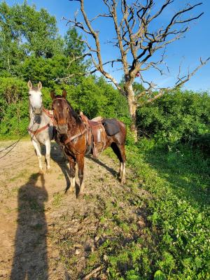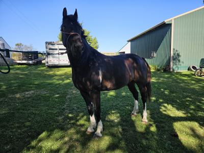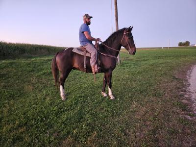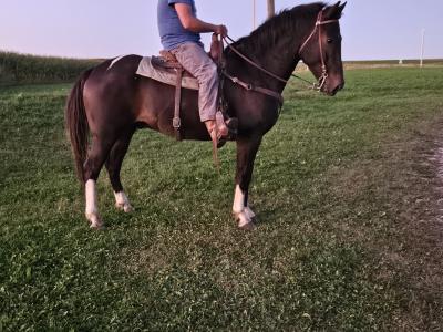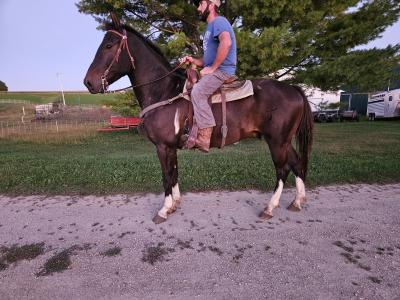 Jett, 8yr old draft cross gelding. Broke to ride. Has been mostly trail ridden. Not a beginners horse. Would make a good ranch horse. Stands good for farrier to be trimmed. Trailers good. Crosses water. He has been driven some single when he was younger, but green. Stands approx 15hh. $3800 | |||