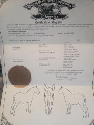 | (Registered with Belgian Draft Horse Corporation of America #M151319) | ||||||||||||||||||