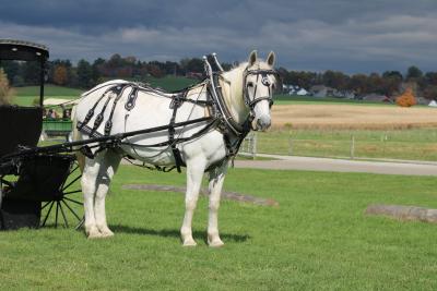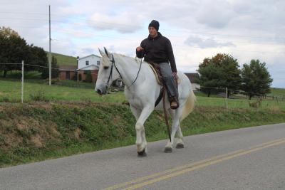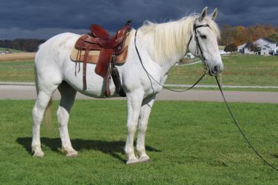 Hershey's Snowflake is a 14 year draft cross mare. Snowflake is very well trained to ride and drive. She would make somebody an awesome trail horse. Plus with her being that pretty white color she would be perfect to do some weddings , everybody loves seeing a white horse pulling a carriage at a wedding or any event. She has been helping give rides here at hershbergers this summer. Snowflake will stand very well for the farrier. She is very friendly and well mannered in the barn, she will be very patient when putting on her tack. Snowflake absolutely beginner safe plus she can still pick up a nice trot and canter if you want her. For more info contact john @ 330 600 0197 | |||