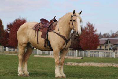 HERSHEY'S CAPPUCCINO HERE IS ONE OF THE MOST UNIQUE COLORED DRAFT CROSSES YOUR GONNA FIND. Cappuccino is very well trained to ride and drive. This summer he was used a lot in the merry go round to give people horse back rides. Cappuccino was also in the carriage giving carriage rides through busy traffic. This fall we had our open late nights where we were open until 9 pm. It was dark and lights were on you could see all the shadows the kids had there glowsticks out and cappuccino was in the middle of it all giving wagon rides to the pumpkin patch and he did not make a miss move. This boy is super smart . He carries himself very nicely for his size. He is very gentle and calm and is a super fun horse to have around. CAPPUCCINO IS CONSIGNED TO THE DIXIE DRAFT HORSE SALE NOV. 28TH FOR MORE INFO PLEASE CONTACT JOHN @ 330 600 0197 | |||
